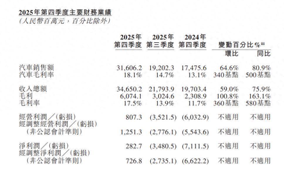蔚来2025年第四季度主要财务业绩 图片来源:蔚来2025年第四季度及全年业绩公告
